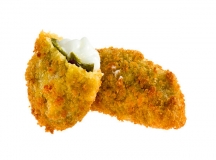 Pickle Fries are thin-cut, brined kosher dill pickles coated in a light, seasoned batter and flour breading