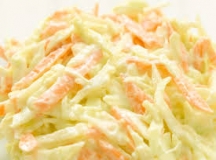 Our house-made slaw features crisp cabbage and shredded carrots tossed in a zesty, vinegar-forward dressing with a hint of creamy dressing for a perfectly balanced crunch